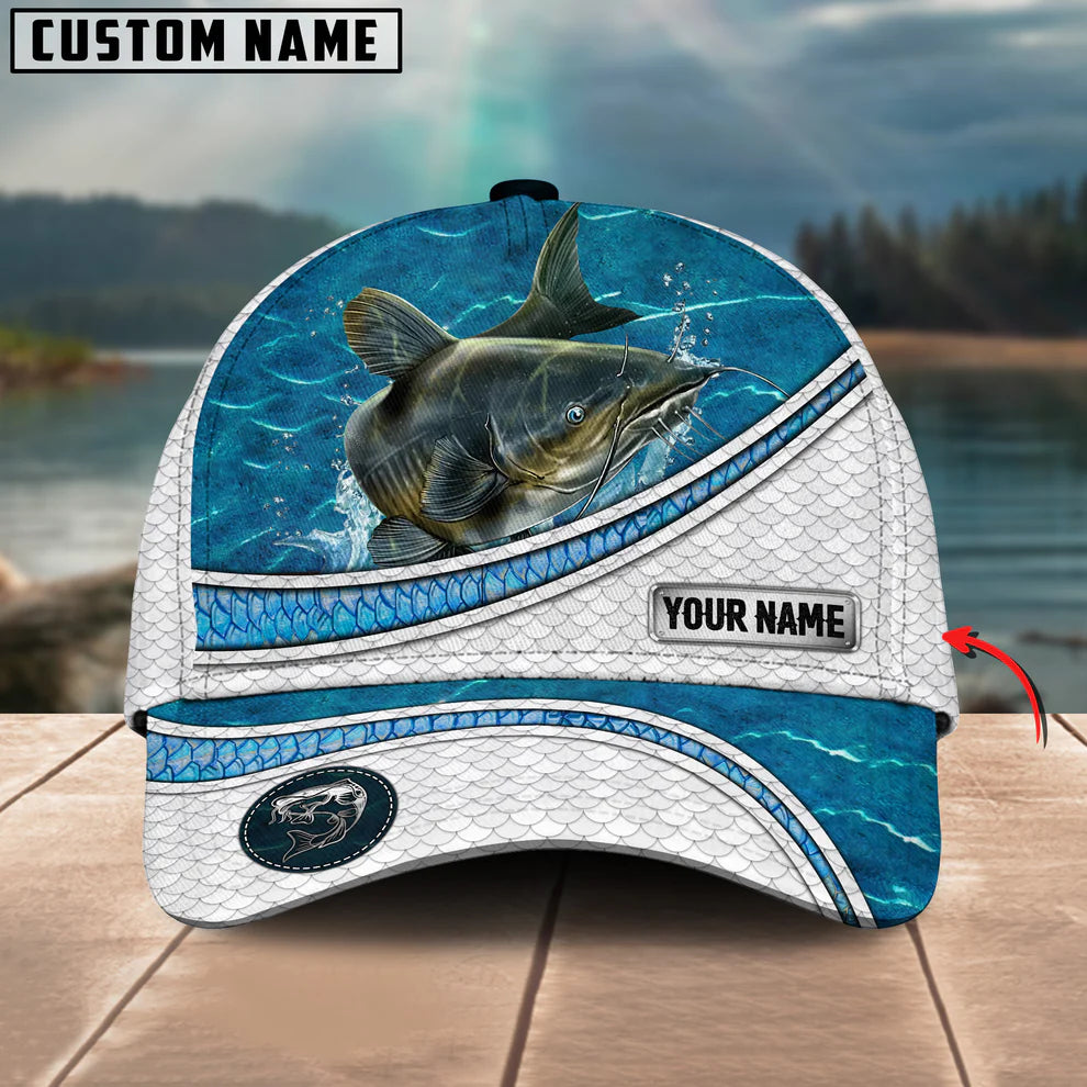 Cowgic Custom Name Catfish Fishing Blue Water Pattern 3D Classic Cap