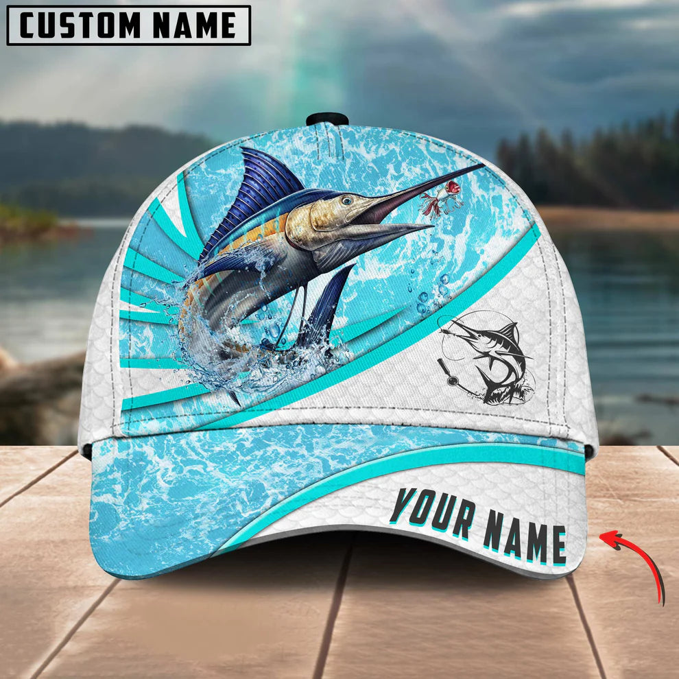 Cowgic Custom Name Marlin Fishing Water Tornado 3D Classic Cap
