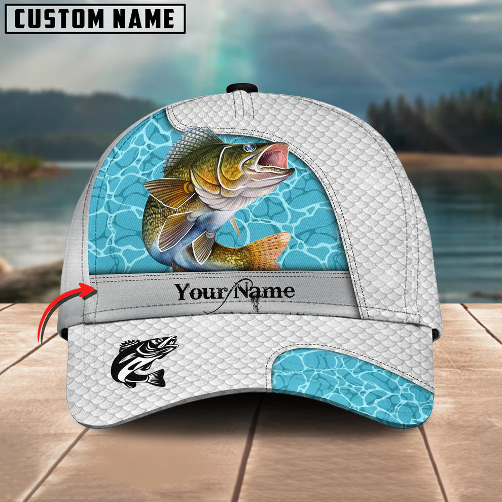 Cowgic Custom Name Walleye Fishing White Blue Water 3D Classic Cap
