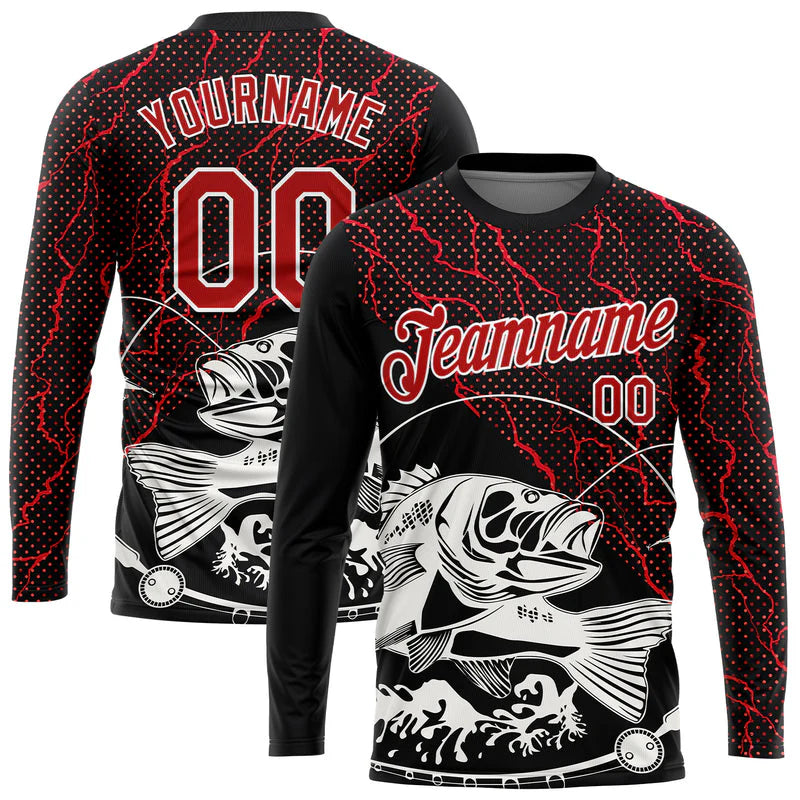 Cowgic Personalized Text Bass Fishing Magma Pattern 3D Long Sleeve Shirt