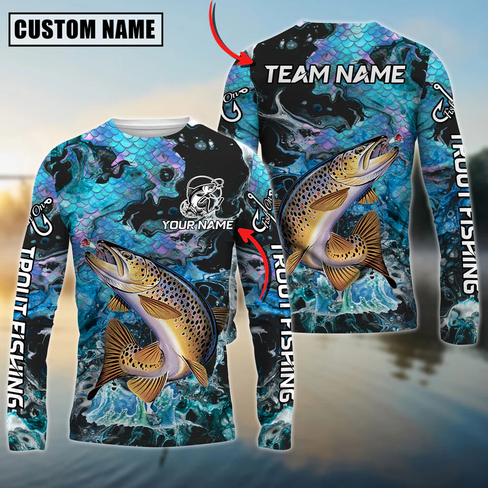 Cowgic Personalized Text Trout Fishing Blue Fishing SkinPattern 3D Long Sleeve Shirt