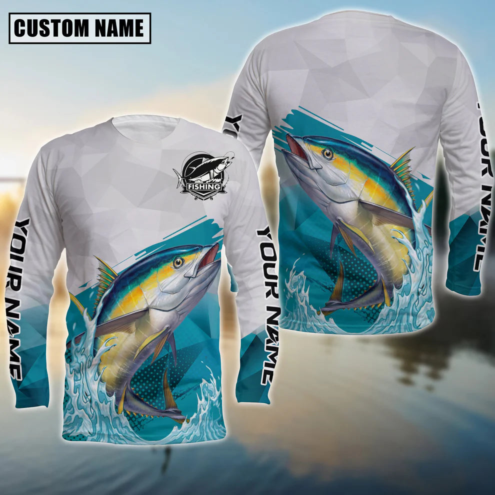 Cowgic Personalized Text Tuna Fishing Water & White 3D Long Sleeve Shirt
