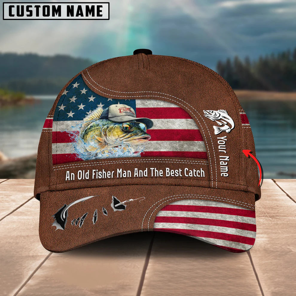 Cowgic Walleye Fishing US Flag Personalized Name Blue 3D Classic Cap